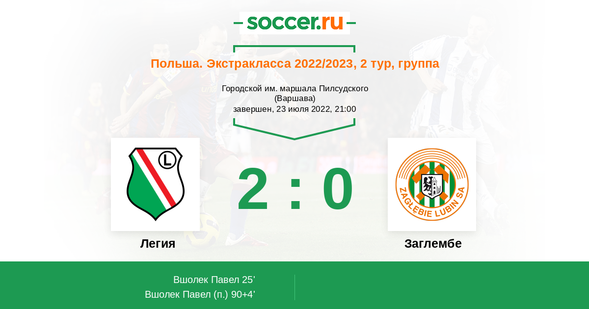 В матче встречающихся сегодня в сильнейшей польской лиге команд Легия и Заглембе рискну предположить победу хозяев потому, как на их стороне поддержка местных фанатов, но и гости наверняка забьют соперникам.