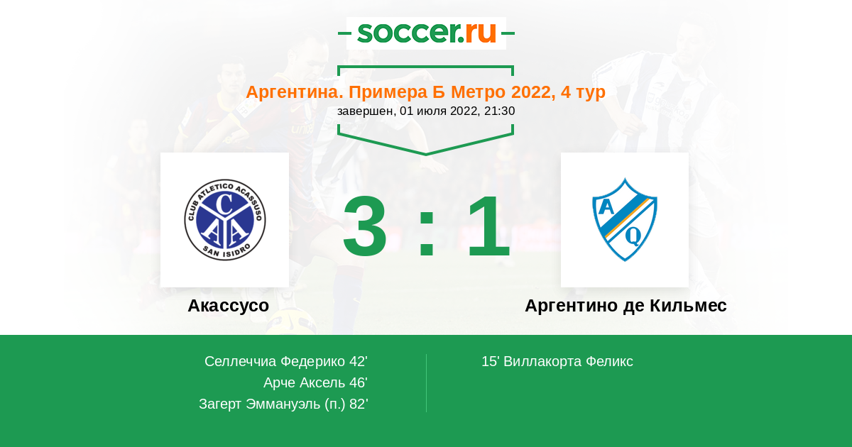 Матчи Аргентина. Примера Б Метро 2022