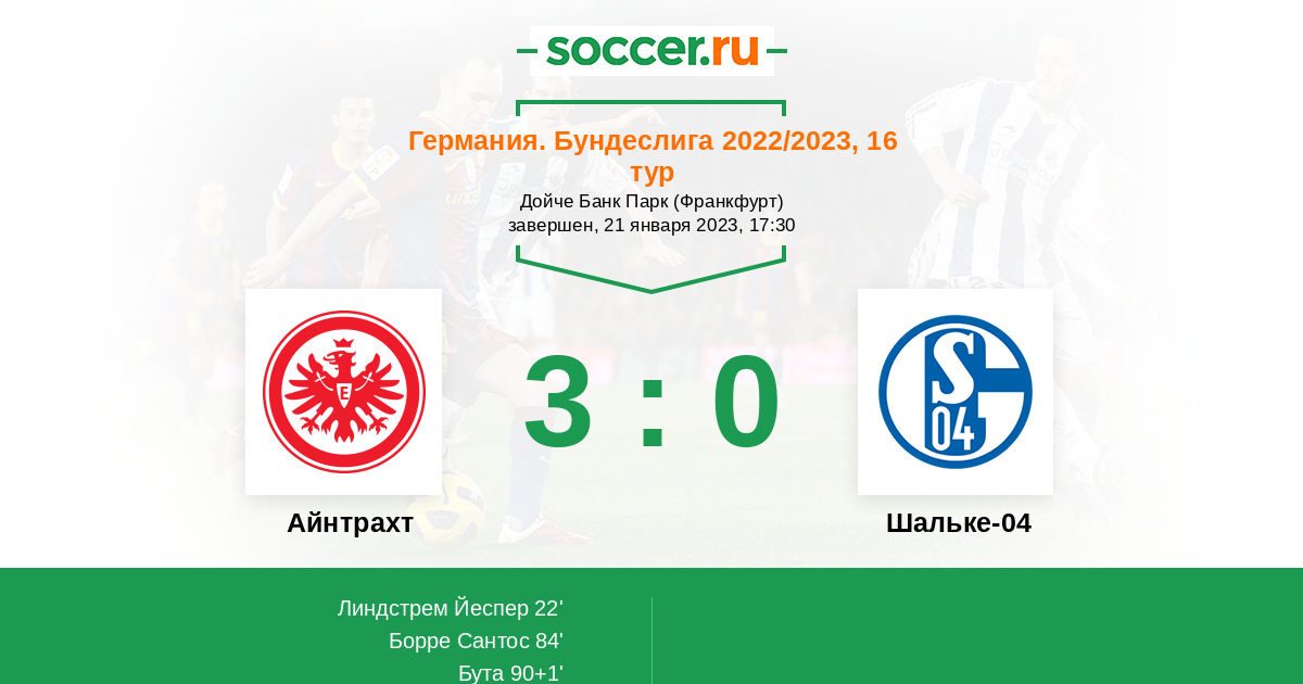 Предстоящий матч между командами "Айнтрахт" Франкфурт и "Шальке 04" явным фаворитом является команда хозяев поля. За короткое время команда под руководством 48-летнего тренера Оливера Гласнера совершила резкий скачок в своих результатах стала победителем Лиги Европы сезона 2021-2022. А самое главное это качество игры команды, которая позволяет уже сегодня "Айнтрахту" бороться за самое высокое место в Бундеслиги. И в этом матче ожидаю результативной игры и уверенной победы хозяев, команды "Айнтрахт". Удачи