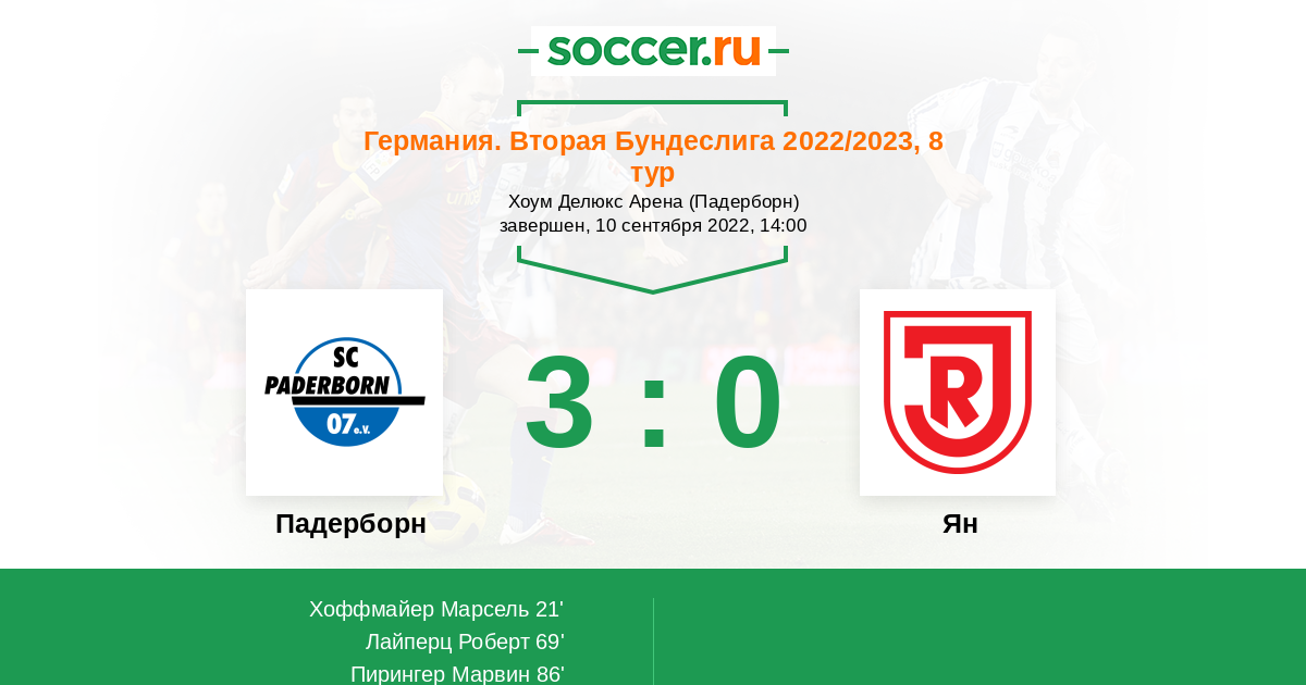 В предстоящем матче 8 - го тура немецкой Второй Бундеслиги между командами Падерборн и Ян , явным фаворитом на победу является команда хозяев Падерборн , так как они играли лучше.