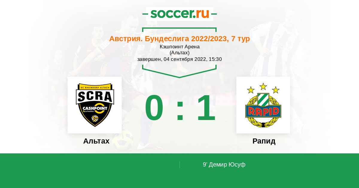 Альтах очень неудачно начал сезон обосновавшись на последнем месте, а оборона так просто совсем дырявая. Более организованный Рапид должен отстоять свои ворота в неприкосновенности, а уж на один гол Рапид должен сподобиться. Победа Рапида.
