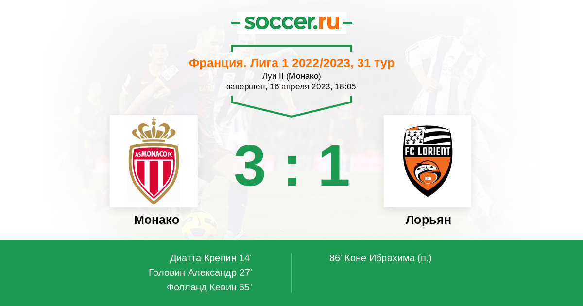 В этом матче между командами Монако и Лорьян фаворитом является команда хозяев поля. Которые продолжают бороться за попадания в зону Лиги Чемпионов и для этого есть хорошая возможность сегодня набрать важные баллы. Удачи