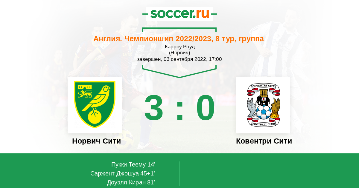 В матче Нрович Сити - Ковентри Сити фаворит более чем очевиден, конечно это команда хозяев, которая находится в лидирующей группе, в то время как их оппоненты находятся на самом дне и просвета не видно.