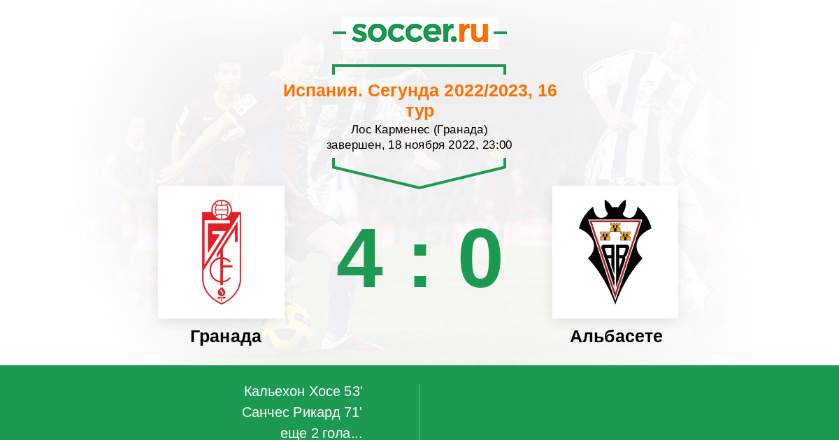 В предстоящем матче 16 - го тура испанской Сегунды между командами Гранада и Альбасете , фаворитом на победу является команда хозяев Гранада, так как игра пройдёт у них дома .