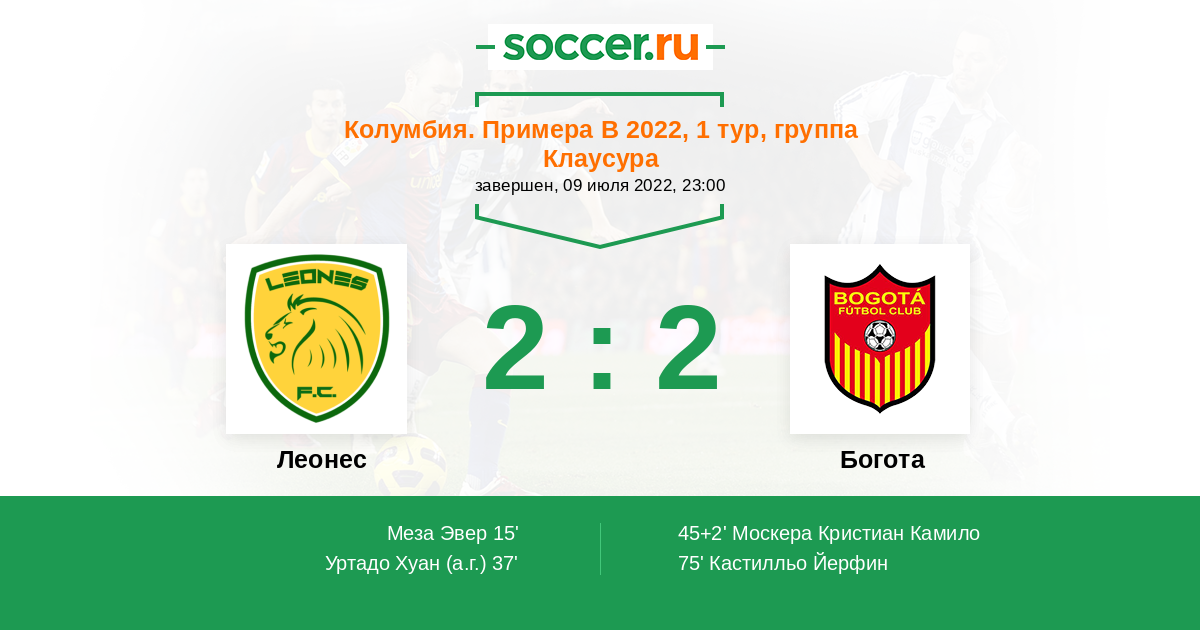 Матчи Колумбия. Примера B 2022