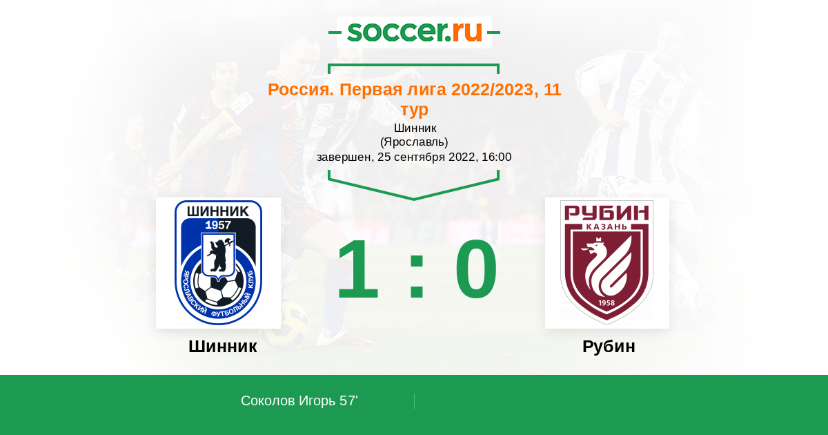 Рубин потихоньку выправляет ситуацию и потихоньку выбирается наверх. Играть с известной командой, такой как Шинник, им будет даже проще, поскольку Шинник не будет тупо отбиваться, а значит шансы Рубина забить повышаются. Победа Рубина.