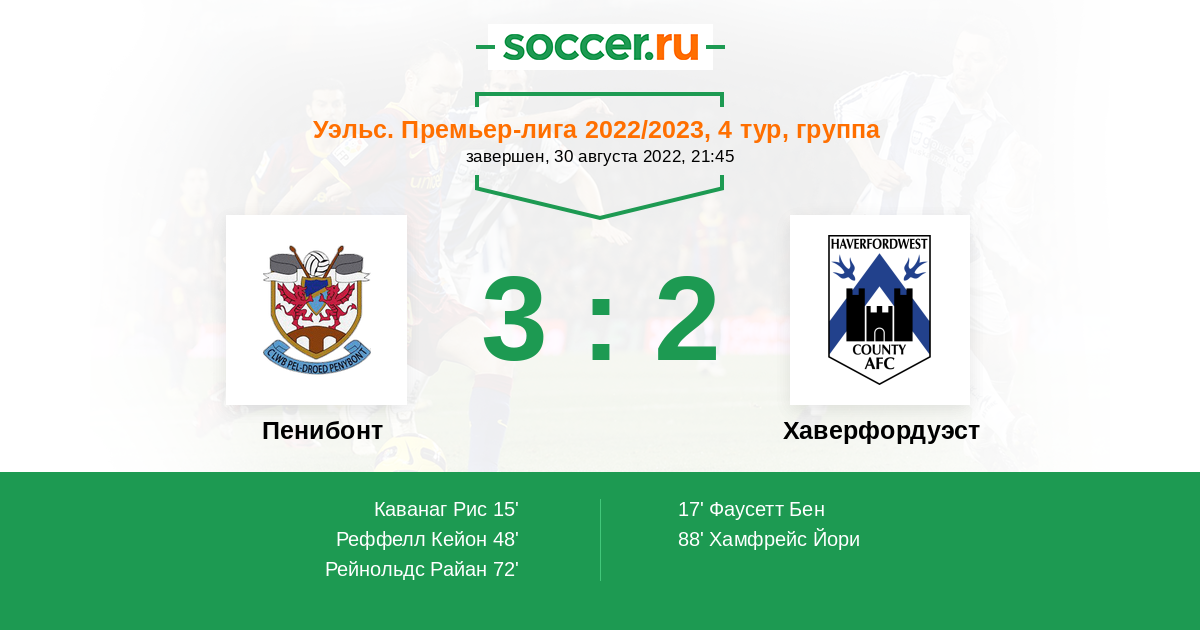 Матчи Уэльс. Премьер-лига 2022/2023