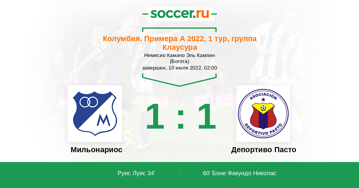Мильонариос - Депортиво Пасто