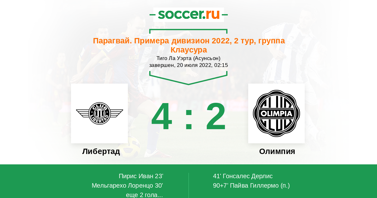 Матчи Парагвай. Примера дивизион 2022