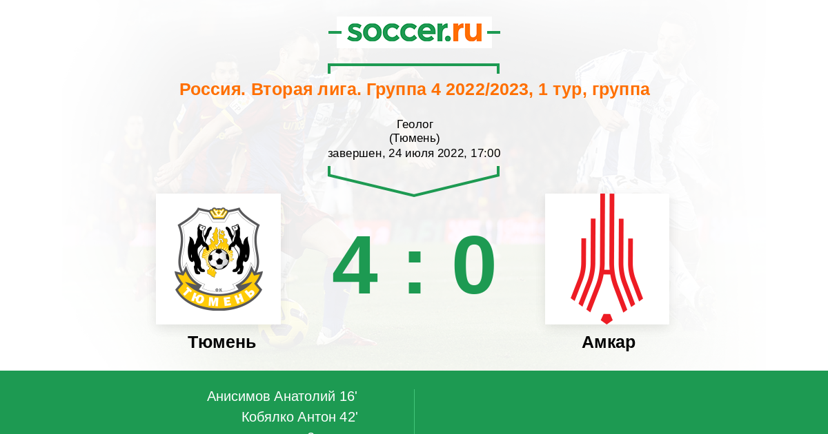 Матчи Россия. Вторая лига. Группа 4 2022/2023
