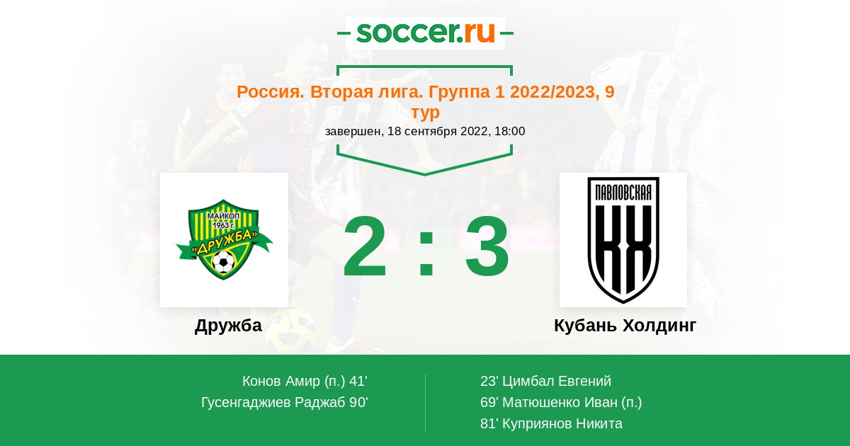 Матчи Россия. Вторая лига. Группа 1 2022/2023