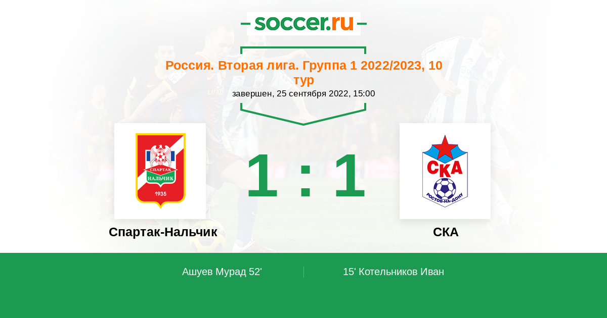 Матчи Россия. Вторая лига. Группа 1 2022/2023