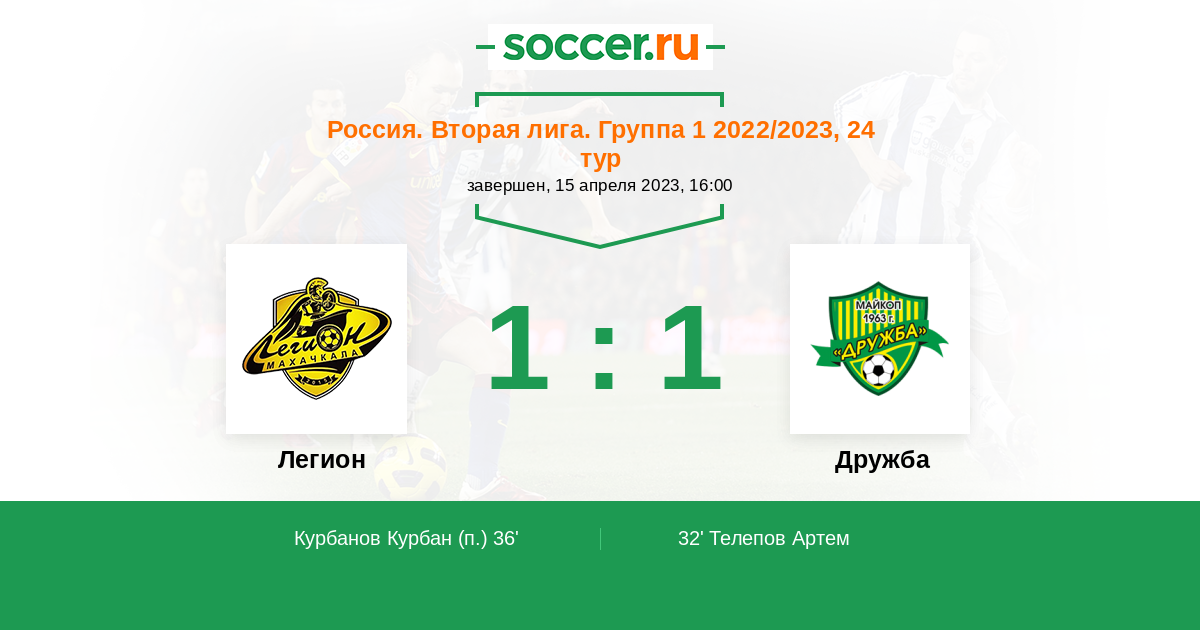 Матчи Россия. Вторая лига. Группа 1 2022/2023