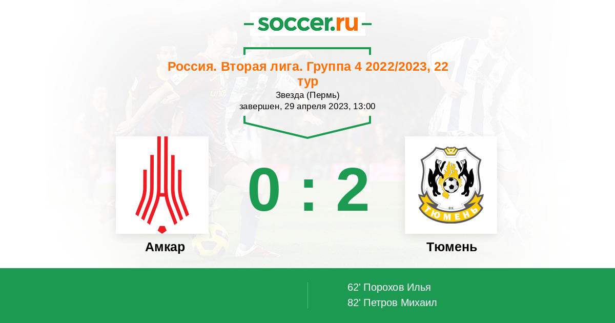 Матчи Россия. Вторая лига. Группа 4 2022/2023