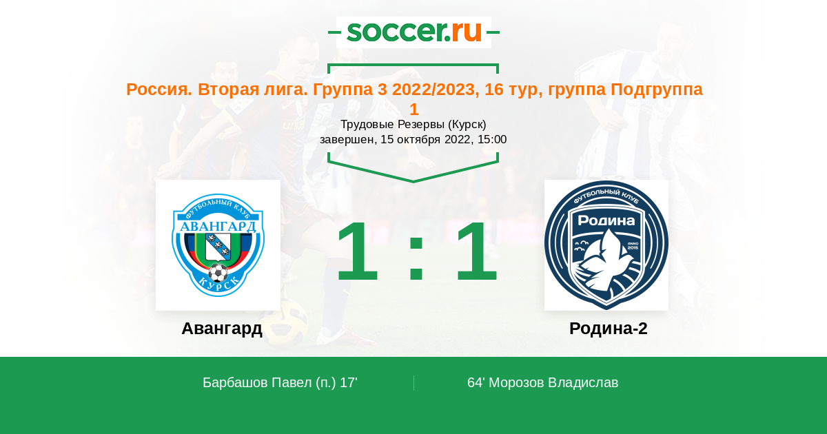 Россия. Вторая лига. Группа 3 2022/2023, 16 тур, Подгруппа 1