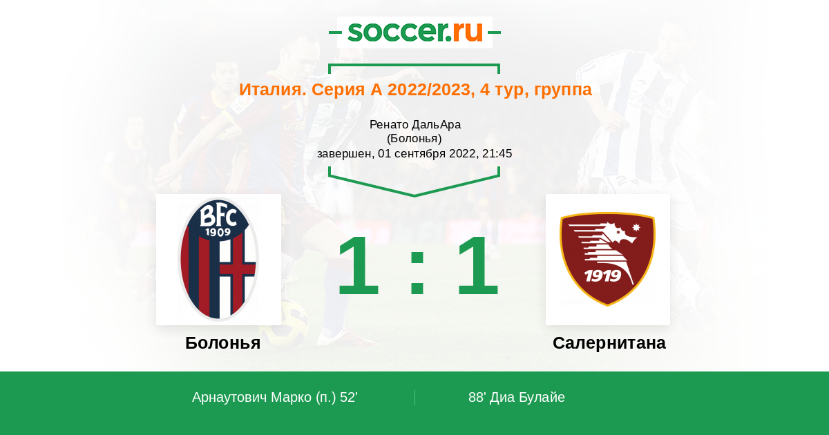 В предстоящем матче 4 - го тура итальянской Серии А между командами Болонья и Салернитана , моим прогнозом будет победа хозяев или ничья , так как матч пройдёт в Болонье .