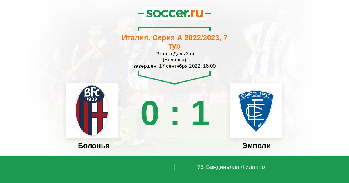 В этой игре я буду делать свою ставку на то что фк Болонья на своём поле не проиграет фк Эмполи и тб 2 гости еще не выиграли не одного матча и сегодня не смогут!