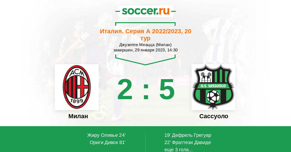 В этом матче между командами "Милана" и "Сассуоло" фаворитом является команда хозяев поля. Победа в этой игре выводить их на вторую строчку турнирной таблицы. Но и гости нуждаются в том чтобы улучшить свою позицию. Удачи