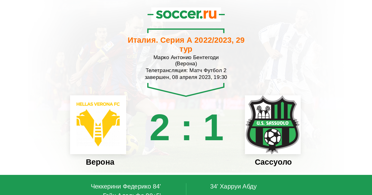 Стадион Марко Антонио Бентегоди (Верона), зрителей: 23660