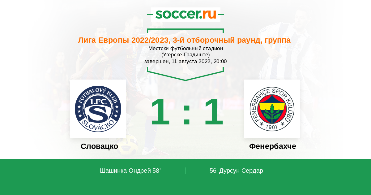 Турецкий клуб – опытный (хоть временами и бесшабашный) еврокубковый боец и вряд ли упустит заработанное преимущество. Тем более силы в самом начале сезона имеются. Чешский клуб на своем поле наверняка пойдет вперед без оглядки – терять уже нечего. А "Фенербачхе" поймает на контратах. Исходя из этого, можно ожидать голов от обеих команд. Наверняка гости смогут как минимум раз огорчить хозяев. Но и "Словацко" постарается порадовать своих фанатов и будет играть в атаку. Первый матч этих команд закончился уверенной победой "Фенербачхе" со счётом 3-0. Учитывая разницу в счёте и классе команд, в этой паре всё уже решено. После первого матча со "Словацко" "Фенербачхе" открыл внутренний сезон в Турции и сыграл дома 3-3 с дебютантом Суперлиги "Умраниеспором". "Словацко" свой внутренний матч завершил домашней победой 1-0. Большинство их последних домашних игр заканчивались с победами в один или два мяча. Но всё же "Фенербачхе" – это совсем другой уровень сопротивления и класс исполнителей.