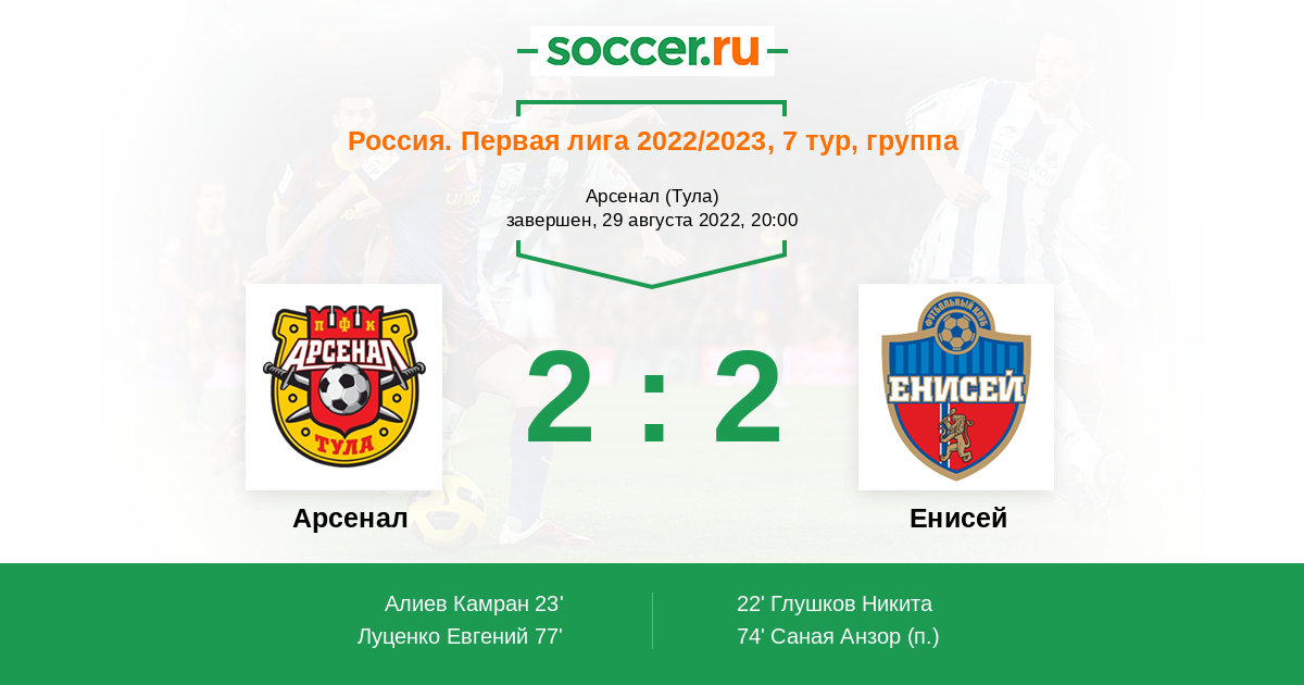 В этой игре я буду делать свою ставку на то что фк Арсенал на своём поле не проиграет фк Енисей и тб 2 команды примерно одного уровня и возможно что сыграют в ничью !