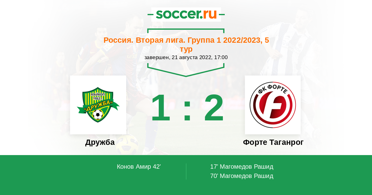 Матчи Россия. Вторая лига. Группа 1 2022/2023