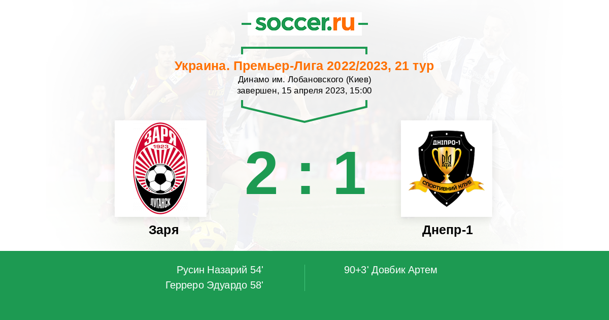 Заря - Днепр 1! Матч соседей по турнирной таблице обещает быть напряжённым. Хозяева отстают на 5 очков и имеют шанс приблизится к сопернику. Заря не плохо играет в очных встречах. 2:1.
