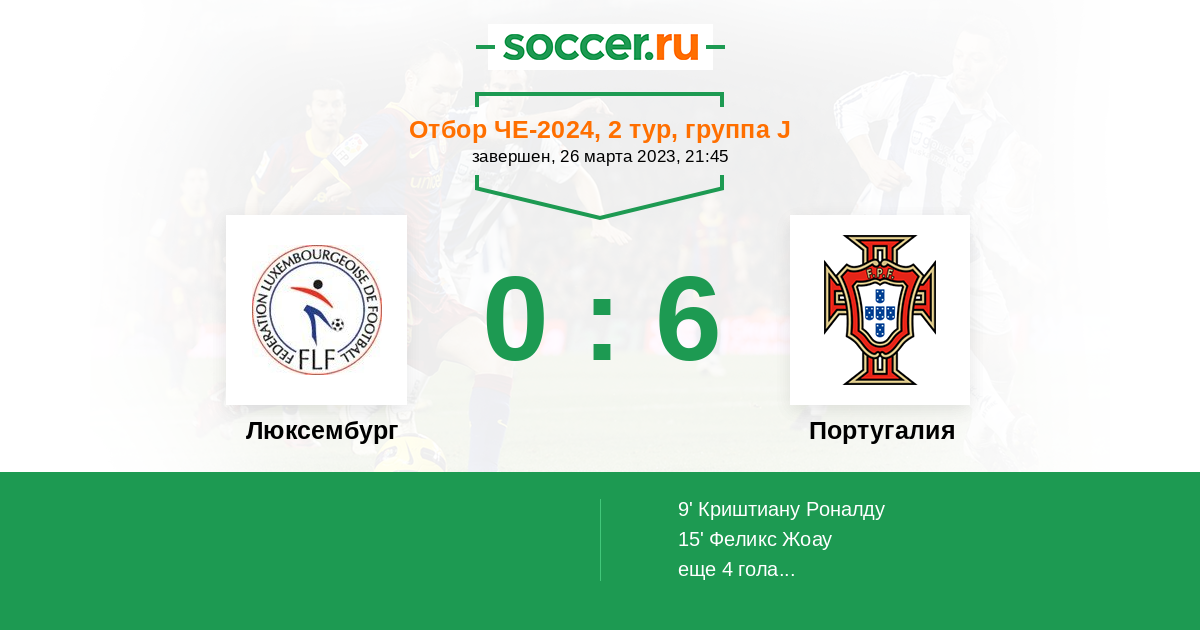 Люксембург показывает неплохие результаты в последнее время. Её смело можно называть середняком, а не безнадежным аутсайдером. Но португальцы любят таких соперников, а для Роналду это прекрасная возможность пополнить свой бомбардирский счет...
