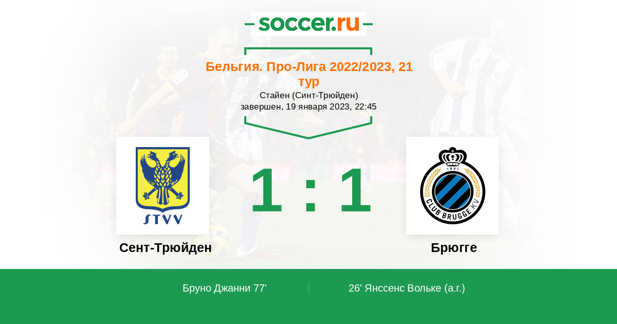 В этом матче между командами "Сент - Трюйден" и "Брюгге" сложно дать преимущество кому либо. У каждого из соперников есть возможность отличиться и добиться нужного результата, чтобы улучшить свою турнирную позицию. Удачи