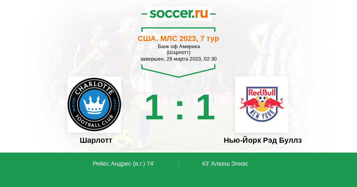 Я думаю что в этом противостоянии более чем явного фаворита на победу нет . Но всё таки небольшое преимущество можно отдать команде хозяев поля Шарлотт . Хотя и команда гостей Нью - Йорк Рэд Буллз вполне может рассчитывать и на ничью.