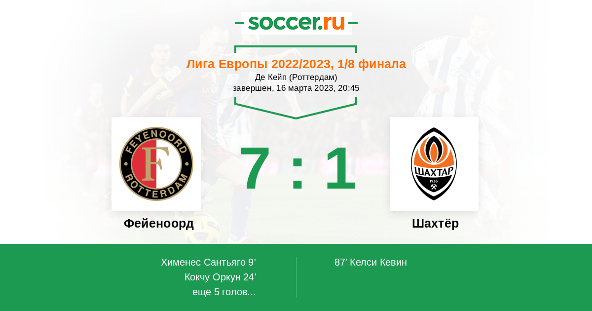 Несмотря на видимые проблемы в первом матче, «Шахтеру» удалось главное: не проиграть. И перед ответным поединком «оранжево-черные» сохраняют неплохие шансы на выход в четвертьфинал ЛЕ. Главное, что на игру в Роттердаме тренерский штаб может рассчитывать практически на всех игроков основной обоймы. Этот аспект отчетливо увеличивает боеспособность «Шахтера». Также мы вправе надеяться и на морально-волевые качества «горняков», на их характер. Да и на удачу тоже, которая в нынешней еврокубковой кампании очень часто помогала «Шахтеру». Удачи «Шахтеру»!