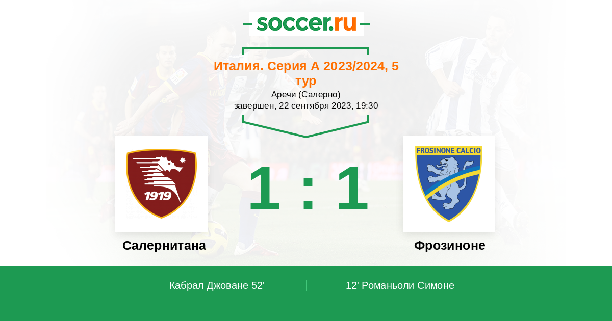 “Салернитана” проиграла два подряд матча не забив ни одного мяча. Вроде бы и есть удары, правда завершение явно хромает и пока что нет этому решения. “Фрозиноне” проигрывая 0:2 “Сассуоло” смог перевернуть ход встречи и одержать победу со счетом 4:2. Гости на подъеме сейчас и есть неплохие шансы даже на выезде как минимум не проиграть “Салернитане”.