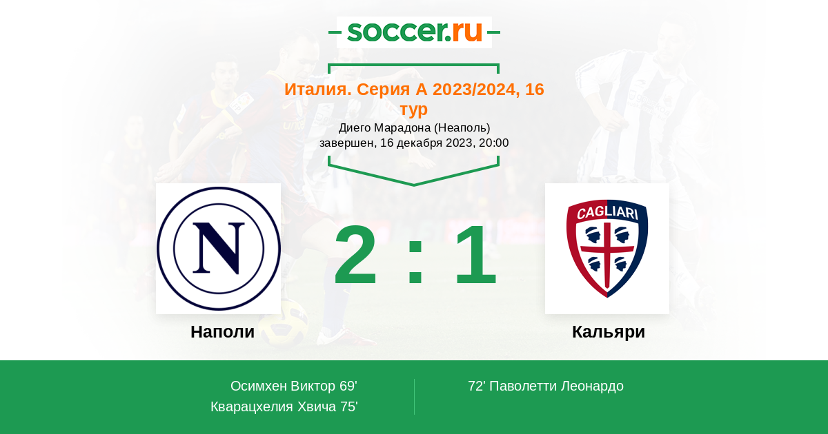 В предстоящем матче 16 - го тура итальянской Серии А между командами Наполи и Кальяри, более чем явным фаворитом на победу является команда хозяев Наполи, так как они играют намного лучше.