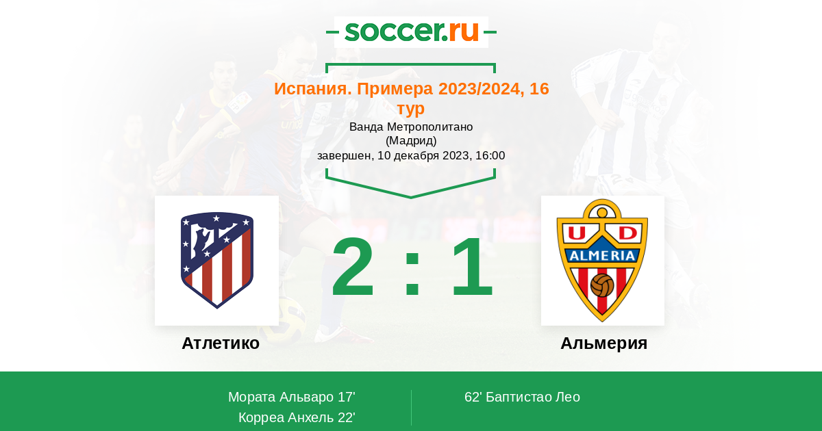 В сегодняшнем матче испанской Примеры между командами Атлетико и Альмерия смею предположить победу хозяев, потому как они располагаются значительно выше в турнирной таблице, плюс гораздо результативнее атакуют и надёжнее обороняются.