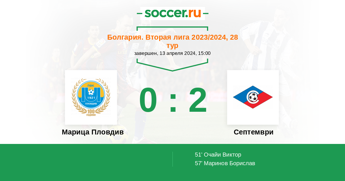 Матчи Болгария. Вторая лига 2023/2024