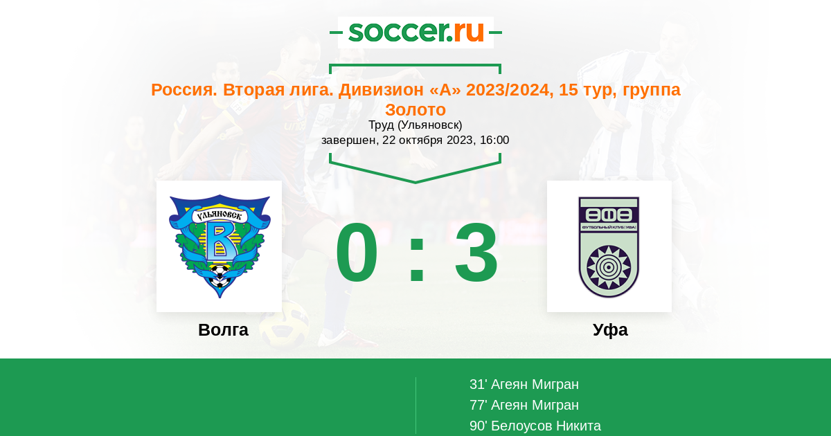 Матчи Россия. Вторая лига. Дивизион «А» 2023/2024