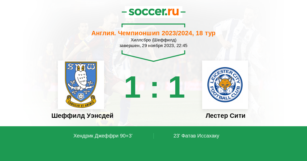 В очередном матче английского Чемпионшипа между командами Шеффилд Уэнсдей и Лестер Сити рискну предположить победу гостей, потому как они располагаются выше в турнирной таблице, плюс результативнее атакуют и надёжнее обороняются.