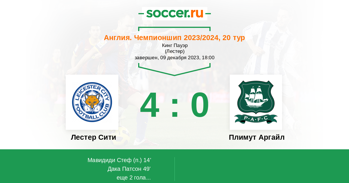 В предстоящем матче 20 - го тура английского Чемпионшипа между командами Лестер Сити и Плимут Аргайл, более чем явным фаворитом на победу является команда хозяев Лестер Сити, так как они играют лучше.
