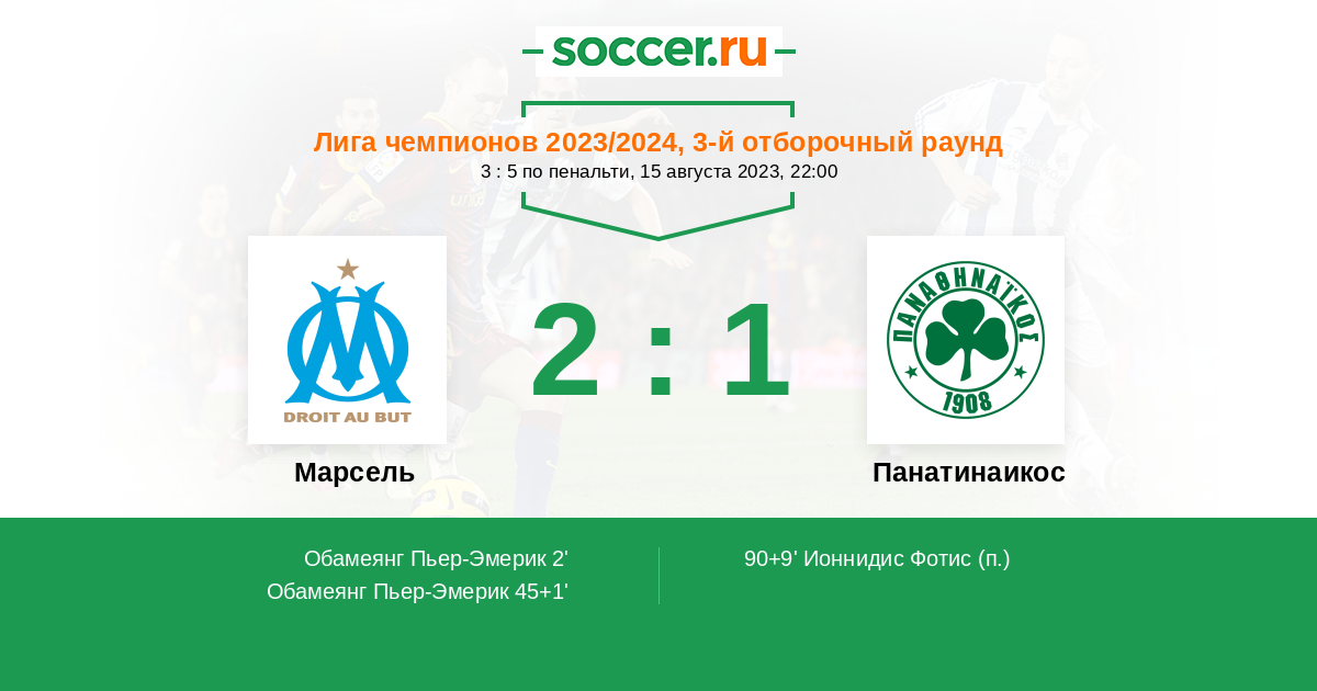 Несмотря на поражение в первом матче на чужом поле все же следует признать, что Марсель помастеровитее греческого клуба. На своем поле Марсель должен ликвидировать гостевую фору и в основное время пройти в следующий раунд.