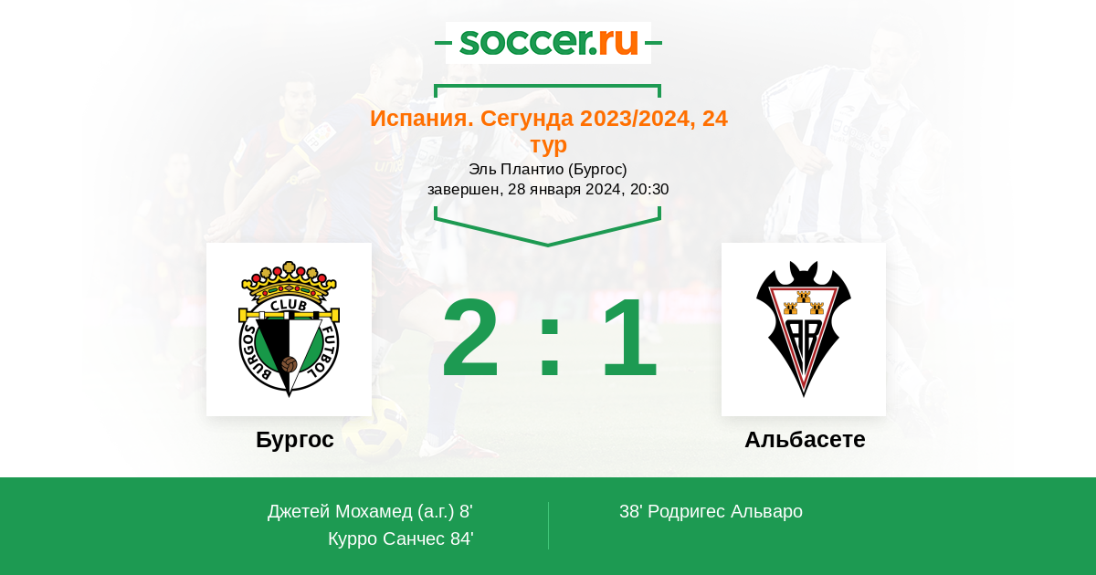Бургос дома просто великолепен, ни одного поражения в 11 матчах. Альбасете на выезде просто отстой, ничего от них ждать не приходится. Ожидаю лёгкой победы на своем стадионе Бургоса. Все к этому располагает.