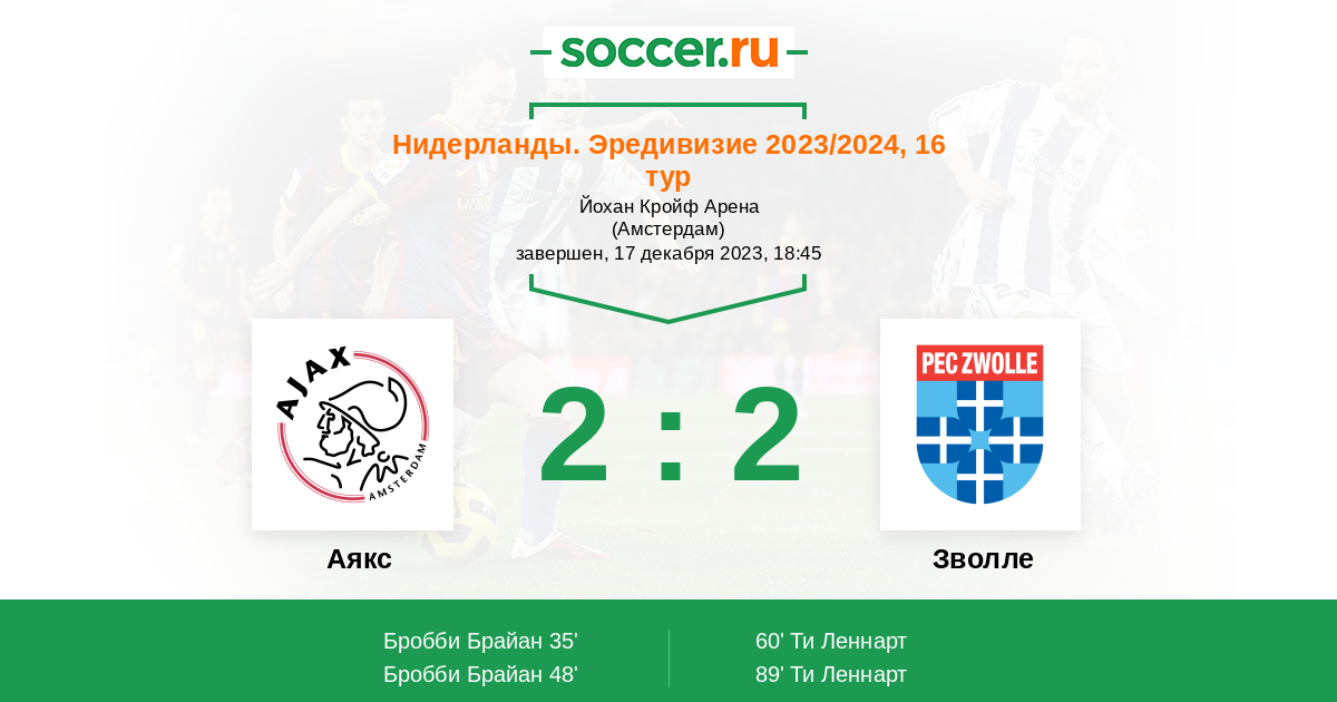 В матче голландского Эредивизие между командами Аякс и Зволле рискну предположить победу хозяев, потому как они располагаются выше в турнирной таблице, плюс гораздо результативнее играют в атаке и надёжнее обороняются.