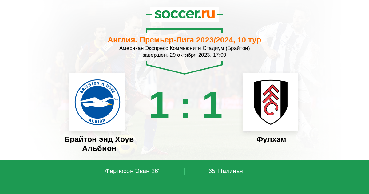 В очередном матче английской Премьер-лиги между командами Брайтон энд Хоув Альбион и Фулхэм смею предположить победу хозяев, потому как они располагаются выше в ТТ, плюс результативнее атакуют и надёжнее обороняются.