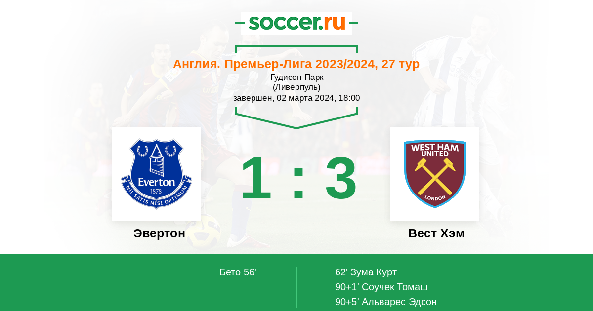 Стадион Гудисон Парк (Ливерпуль), зрителей: 39262