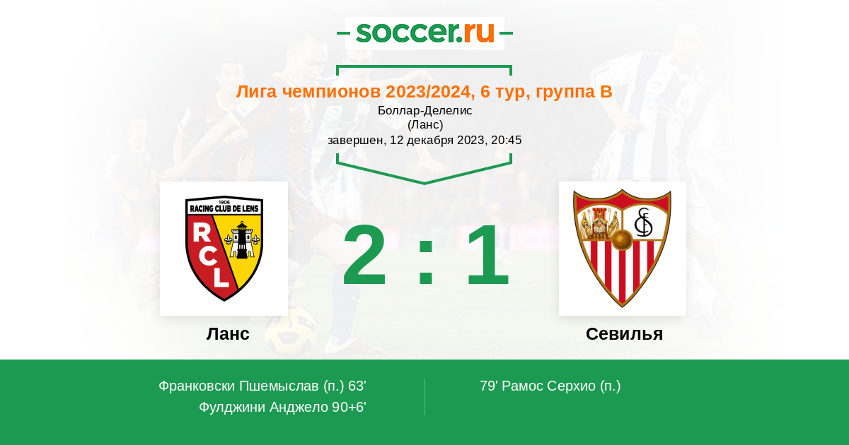 “Ланс” в родных стенах за текущий сезон проиграл всего один матч. Хотя французский коллектив в этой встрече не будет гнаться за победой - для прохода во второй по значимости еврокубок достаточно просто не проиграть. Впрочем “Севилья” должна в этой встрече побороться, ведь сезон и так уже можно считать провальным.