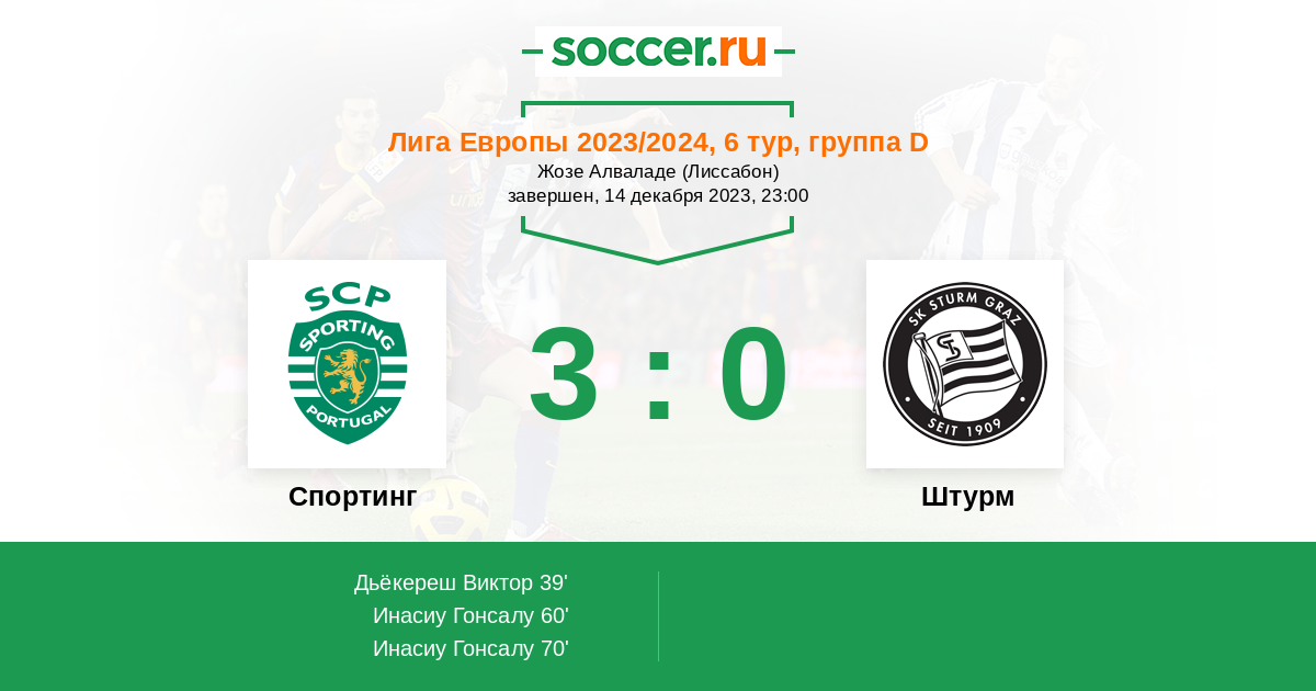 “Спортинг“ гарантировал себе вторую строчку и уже не поднимется выше в турнирной таблице. Однако португальцы играют дома и вряд ли будут действовать спустя рукава. “Штурму“ нужны очки, но австрийцы заметно слабее и неважно выглядят на выезде в последнее время – лишь одна победа за четырех матча.
