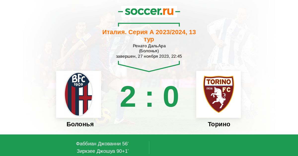 Стадион Ренато ДальАра (Болонья), зрителей: 20705