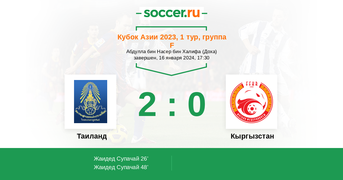 Явного перевеса в этой встрече нет ни у кого, однако стоит обратить внимание, что некоторые футболисты сборной Кыргызстана выступают в турецком чемпионате. У Таиланда европейских легионеров нет, поэтому они вполне могут уступить в этой встрече, несмотря на то, что в целом у них неплохие результаты были на Кубке Азии.