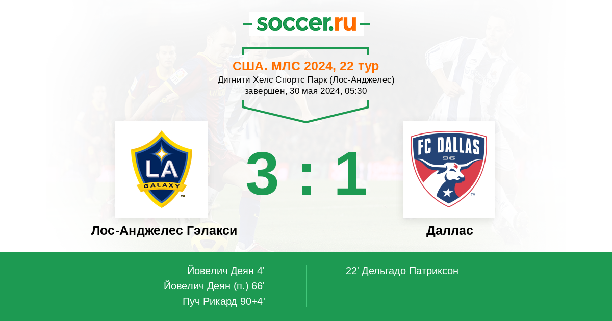 Лос-Анджелес Гэлакси - Даллас ! В данный период команды довольно частенько " катают " ничейные результаты . Думаю гости могут " упереться " в этом матче . Пробую на них плюсовую фору .