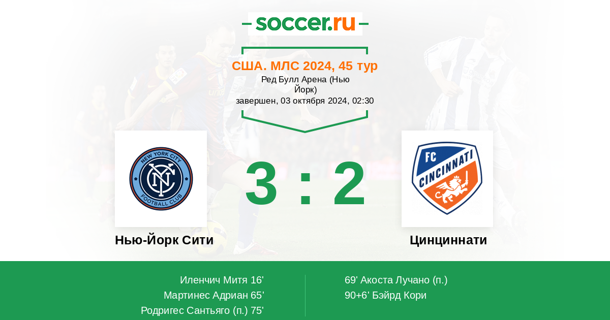 Нью-Йорк Сити - Цинциннати ! Хозяева идут не большим фаворитом в этом матче . Но гости находятся выше в тур . таблице , и претендуют на самые высокие места . То есть , мотивация присутствует у обоих клубов . ТБ .