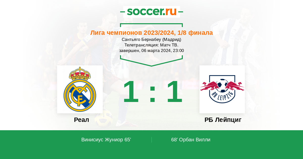 Да ладно, а прошлая игра - зеркальное отражение этой пока что (с поправкой на то, что "Реал" сыграл куда надёжнее), тоже РБ первый тайм за собой оставил, причём куда более убедительно. А во втором "Реал" вполне неплохо создавал.